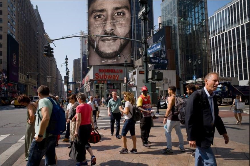 전 미식 축구 선수 콜린 캐퍼닉을 모델로 기용한 광고입니다.